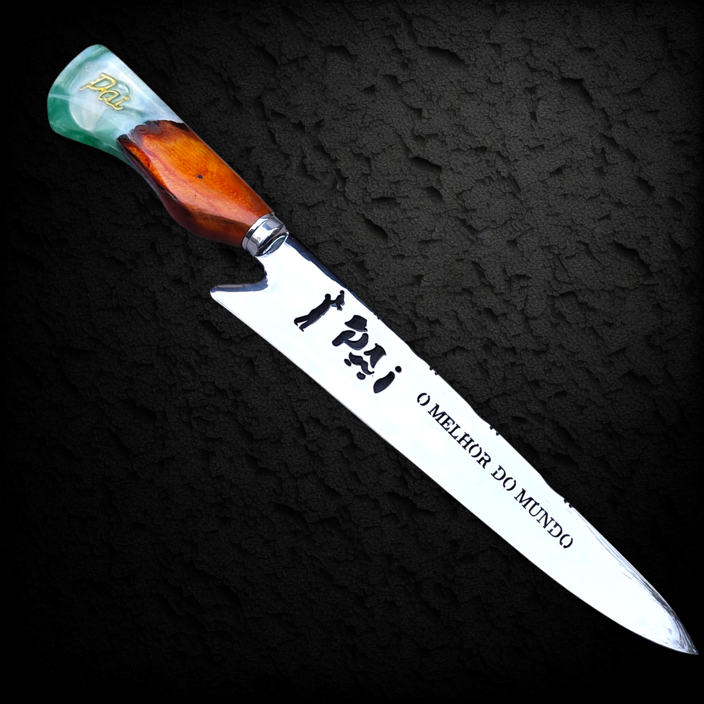 A Faca Artesanal PAI – Edição Especial Dia dos Pais é uma criação rara da Cutelaria Bianco, forjada à mão para eternizar memórias e celebrar vínculos que atravessam gerações. Mais do que uma ferramenta, esta peça simboliza legado, presença e história, traduzidos em design autoral e acabamento de excelência.